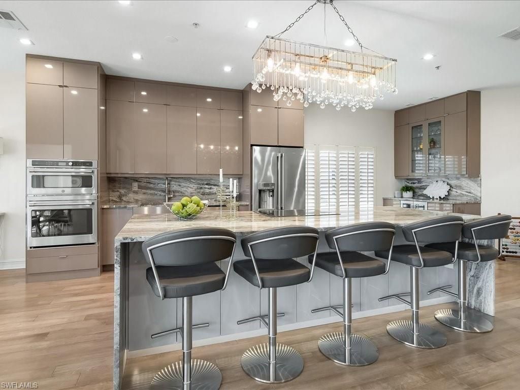 Beautifully renovated, impeccably designed, and perfectly located—this elegant residence offers the ideal blend of luxury, comfort, and the vibrant Southwest Florida lifestyle. Experience effortless Southwest Florida living in this completely reimagined and beautifully renovated residence in the highly sought-after community of Pelican Landing. Taken down to the studs and thoughtfully redesigned, this stunning condo blends casual coastal elegance with exceptional crafts...Beautifully renovated, impeccably designed, and perfectly located—this elegant residence offers the ideal blend of luxury, comfort, and the vibrant Southwest Florida lifestyle. Experience effortless Southwest Florida living in this completely reimagined and beautifully renovated residence in the highly sought-after community of Pelican Landing. Taken down to the studs and thoughtfully redesigned, this stunning condo blends casual coastal elegance with exceptional craftsmanship—offering a truly turnkey opportunity where every detail has already been perfected. The redesigned floor plan creates an open, inviting, light, bright, living space centered around a spectacular chef’s kitchen. A dramatic 10-foot island with a granite waterfall countertop and storage on both sides anchors the room. All complemented by sleek European cabinetry, a stainless double farmhouse sink, touchless faucet, and premium GE Café appliances—including a refrigerator with a built-in Keurig for effortless mornings. The spacious gathering area flows seamlessly into the enclosed all-season lanai, where impact glass sliding doors transform the space into an extension of the living area. From here, enjoy peaceful golf course and lake views that create the perfect backdrop for morning coffee or evening gatherings. Throughout the home, sophisticated design elements elevate the living experience—from stunning statement lighting and recessed LED lighting to engineered wood flooring, custom Lucite handrails, and thoughtfully designed storage solutions with fully outfitted closets. A brand new AC unit ensures your comfort won’t be interrupted. The serene primary suite offers a luxurious retreat, highlighted by a spa-inspired bath featuring quartzite countertops, dramatic tile work, and a walk-in shower with multiple shower heads and a rain shower for a true resort-style experience. Offered turnkey, this residence allows you to move in and immediately begin enjoying the Southwest Florida lifestyle. The home is beautifully appointed with elegant, designer-selected furnishings that perfectly complement the coastal aesthetic of the renovation. Every detail has been thoughtfully curated—from sophisticated décor to high-end finishes—creating a polished, luxurious space where nothing is needed except your suitcase. Located within the amenity-rich community of Pelican Landing, residents enjoy an unparalleled lifestyle including a private 34 acre beach park accessible by water taxi, tennis and pickleball centers, fitness facilities, kayaking, sailing, walking trails, and optional golf at The Nest or The Colony.