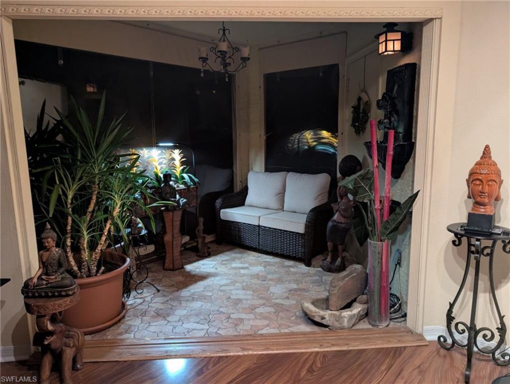 As you step inside, you are greeted by an open-concept living space bathed in natural light, dark wood flooring and tropical-inspired wall colors. The spacious living room seamlessly flows into the well-equipped kitchen, which includes GE appliances, granite countertops/backsplash, ample cabinetry and alongside a convenient private in-unit laundry area. This inviting oasis boasts custom features, including ceiling fans, updated light fixtures, and tasteful finishes that create a warm at...As you step inside, you are greeted by an open-concept living space bathed in natural light, dark wood flooring and tropical-inspired wall colors. The spacious living room seamlessly flows into the well-equipped kitchen, which includes GE appliances, granite countertops/backsplash, ample cabinetry and alongside a convenient private in-unit laundry area. This inviting oasis boasts custom features, including ceiling fans, updated light fixtures, and tasteful finishes that create a warm atmosphere. The expansive master bedroom offers a comfortable space for a relaxing seating area and includes an en-suite master bathroom with a tub/shower combination. The second bedroom is equally spacious and versatile, making it ideal for guests or a home office. Step outside onto your private balcony, where you can unwind while soaking in spectacular views of the lush landscape—a picturesque backdrop for your morning coffee or evening cocktails. Nestled within a beautifully manicured environment, you will find an expansive resort-style saltwater pool and spa, complete with a sun deck cabana, grill area, and clubhouse. If you prefer to stay active, you have the option of enjoying either a tennis court or a fully equipped fitness center, both easily accessible. Additionally, there is an ample car-wash area and plenty of guest parking. San Mirage is centrally located, directly across the street from the Promenade of Bonita Springs, an open-air mall where you can enjoy a vibrant array of shopping and dining options. Additionally, it is conveniently situated near Miromar Outlets and Coconut Point Mall. Experience the luxury of living close to the pristine beaches of Bonita and Vanderbilt, both just a short drive away. RSW Airport is also easily accessible, ensuring effortless travel for your convenience. Don’t miss this rare opportunity to own a condo in such a prime location with LOW HOA. Schedule a viewing today and discover the exceptional lifestyle that residents enjoy, complete with top-notch amenities!